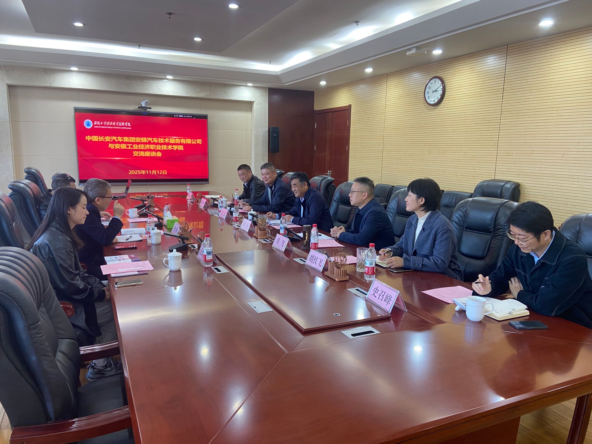 11月12日下午,中国长安汽车集团安驿汽车技术服务有限公司产教融合业务总监李斌一行来学院交流座谈。院党委书记许卫出席,党委委员、副院长吴飞主持,教务处、科技合作处、合肥工业技术学校、智能汽车学院、校企合作办公室等相关部门负责人参加会议。