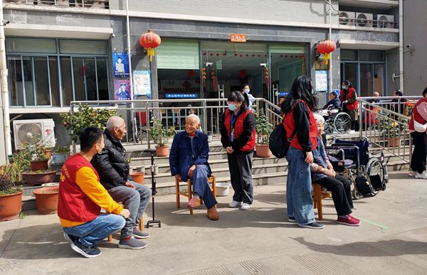 早上8:30,20多名志愿者怀着诚挚之心,带着为老人购买的慰问品来到养老院,老人们热情欢迎同学们的到来。志愿者们陪老人聊天,为老人锤背,带老人散步,活泼蓬勃的青年朝气感染了老人们,养老院里充满了欢声笑语。