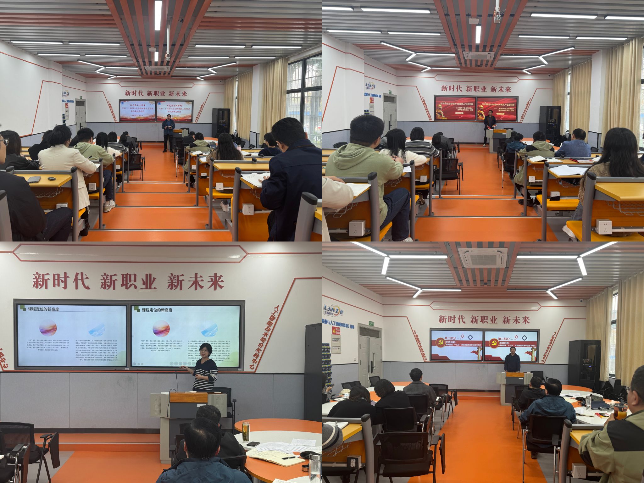 三位教研室主任结合《思想道德与法治》《毛泽东思想和中国特色社会主义理论体系概论》《形势与政策》课程教学实际,就如何准确把握党的二十届四中全会精神核心重点、融入方法等进行备课展示。他们强调,思政课教师要始终保持政治敏感性,先学一步,学深一层,学深悟透全会精神,要紧密结合教育教学实际,深入思考全会精神对教育改革发展提出的新要求,真正做到融会贯通,推动党的创新理论入脑入心,见行见效。