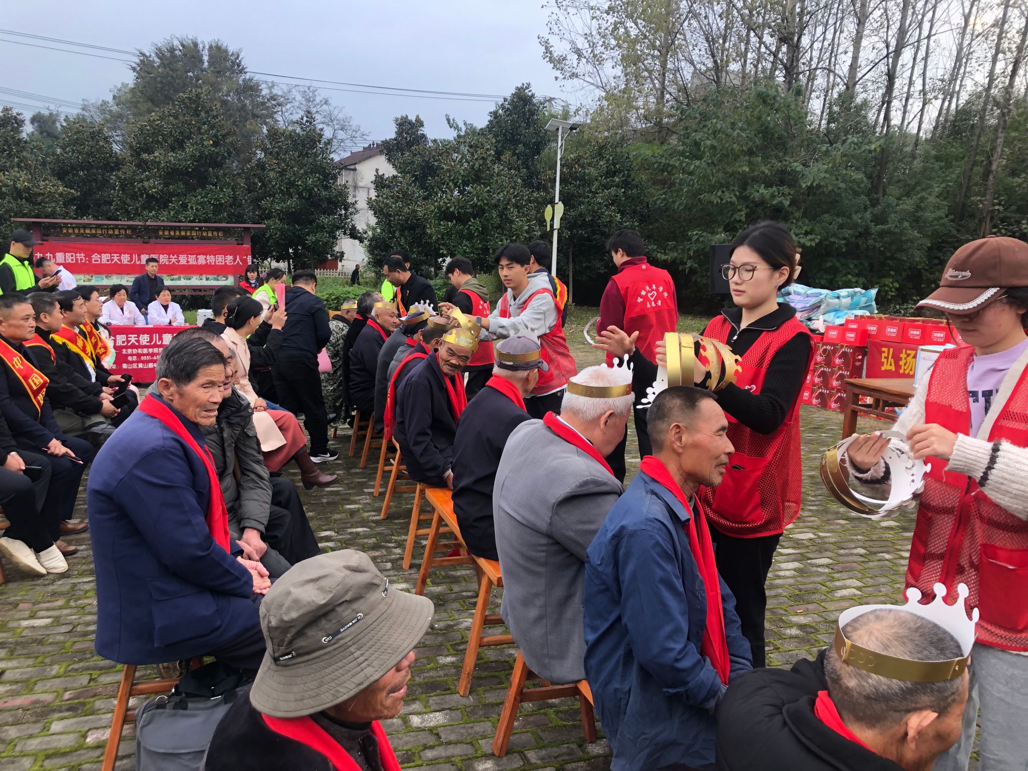 在温馨和谐的氛围中,志愿者们为老人们系上象征吉祥祝福的大红围巾。庐江县万山镇党委委员沈怡致欢迎辞,向辛劳了一辈子的老人们致以节日问候;“中国好人”单务民老师为老人们送上饱含深情的重阳祝福,话语间充满对老年群体的关注与关爱。