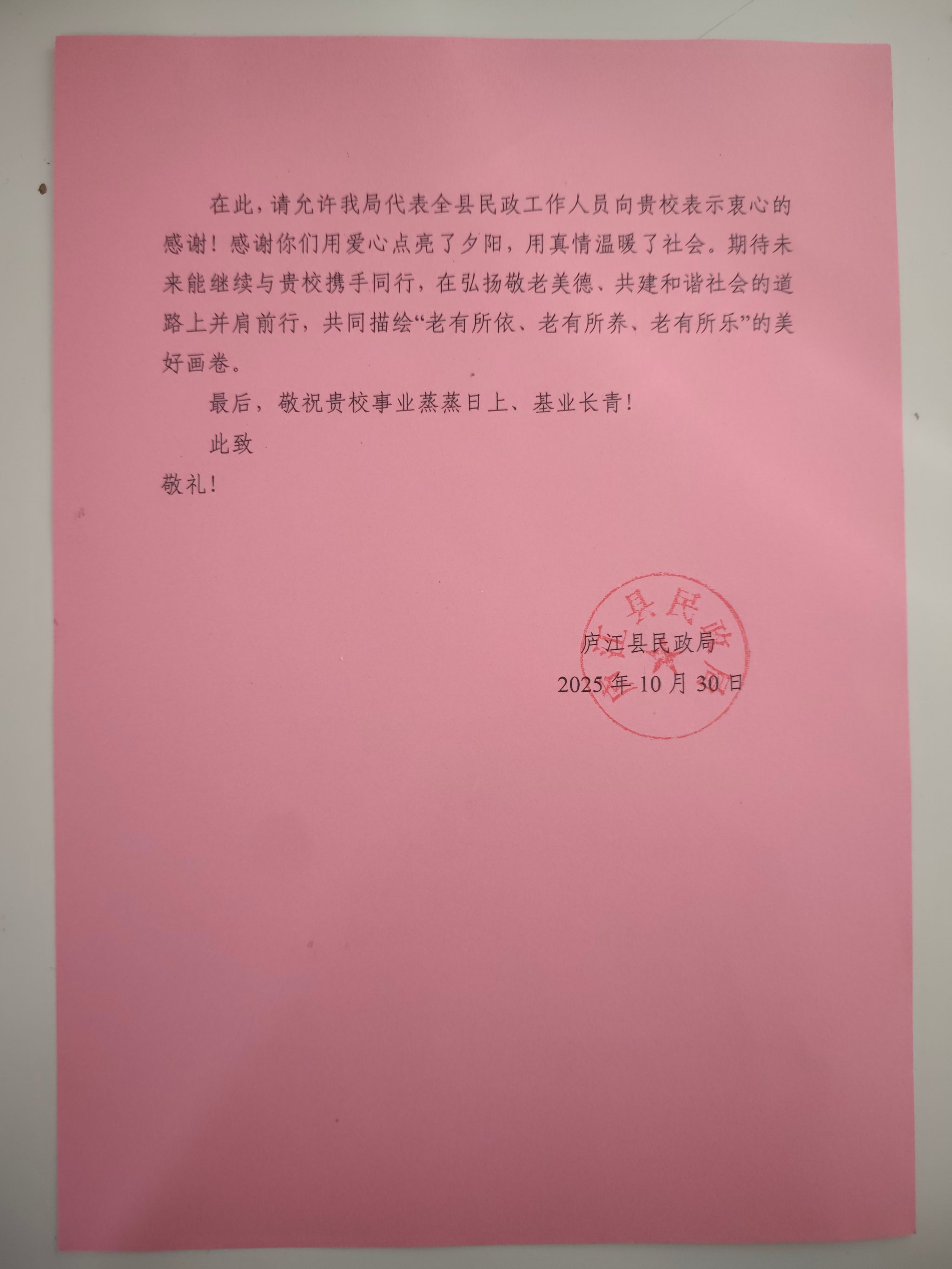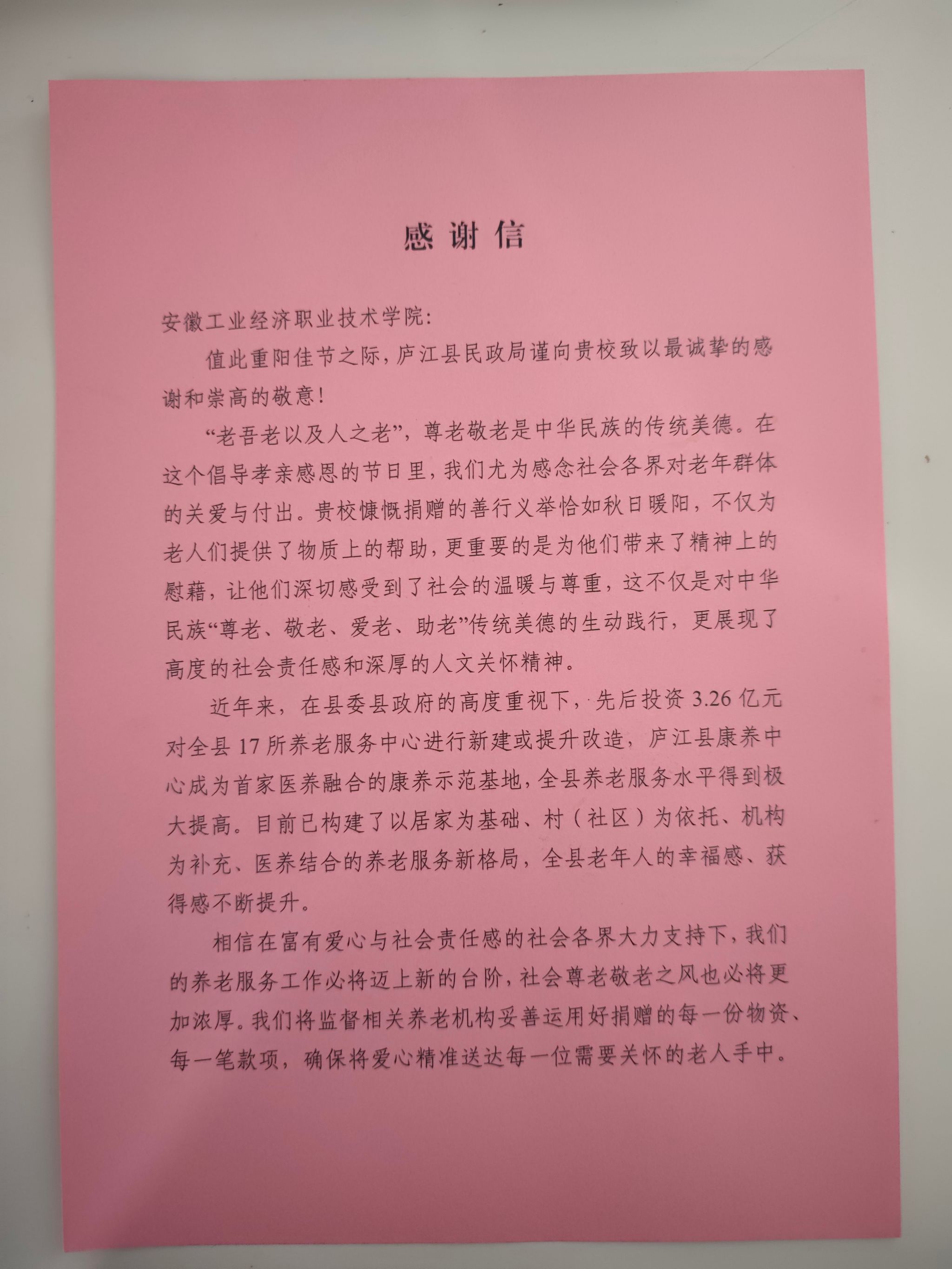 此次重阳节慰问活动,不仅为老人们带去了欢乐与关怀,更彰显了智能汽车学院的社会担当。事后,包括合肥新闻联播、大皖新闻、长江网、中国民政等多家媒体纷纷报道此次慰问活动,进一步扩大了活动的社会影响力,展现了新时代高校师生服务社会、奉献社会的良好风貌。庐江县民政局也给学院发来感谢信,对学院积极参与敬老爱老公益活动表示高度认可,并对我校师生的暖心举措给予充分肯定。