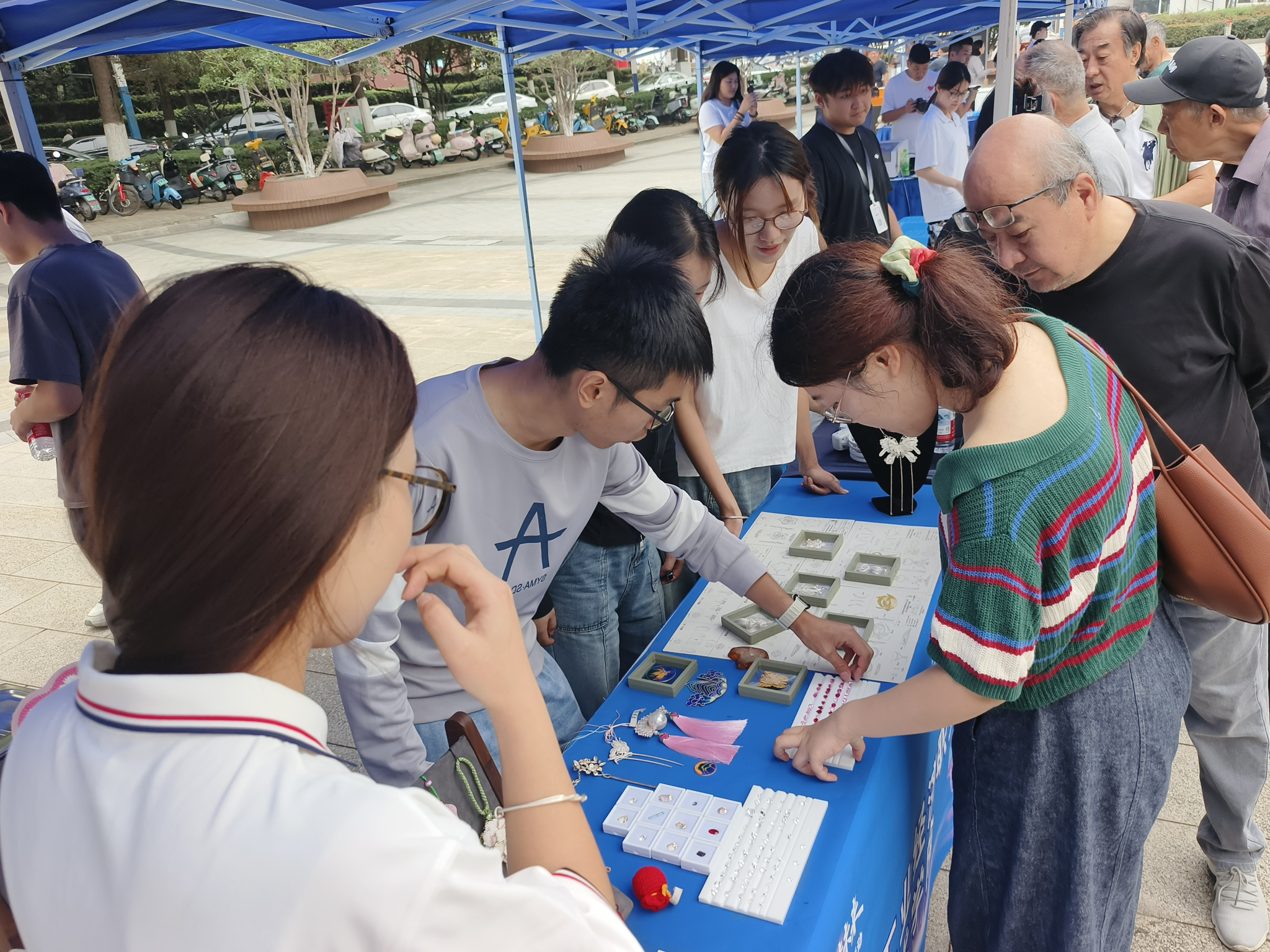 活动现场,学院师生精心搭建科普互动摊位,聚焦低空经济无人机技术与珠宝玉石鉴赏两大特色领域,开展无人机飞行实操体验、公益鉴宝等便民服务。直观的操作演示、专业的答疑解惑,吸引大批市民驻足围观、积极参与,现场气氛热烈,赢得群众一致好评。